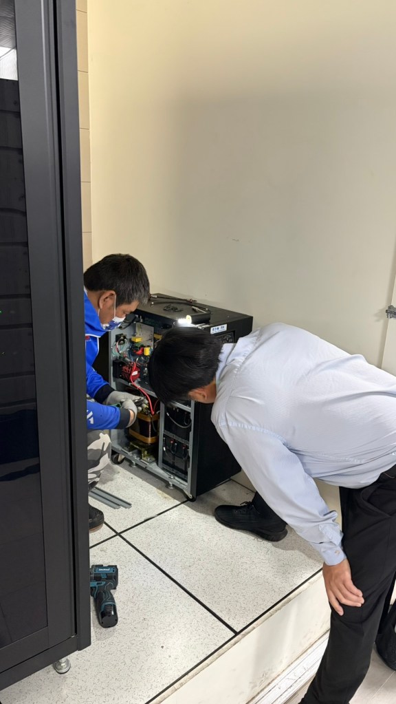 - 開機測試與負載驗證:安裝完畢後進行開機檢測,確認警示燈號解除,並與客戶的資訊人員一同確認 UPS 系統已恢復正常的備援狀態。